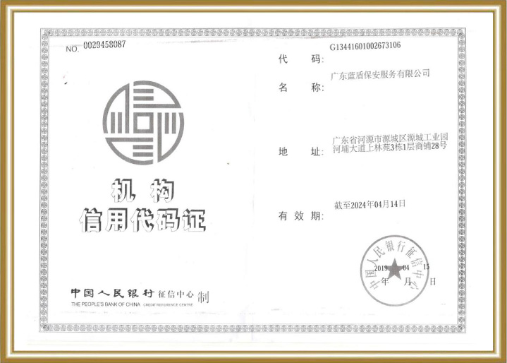 廣東藍盾保安服(fú)務(wù)有限公司(sī)經工商、公安機關批準成立,由于公司(sī)業務(wù)蓬勃發展,于2014年在(zài)廣東河(hé)(hé)源市(shì)成立廣東藍盾保安服(fú)務(wù)有限公司(sī)。公司(sī)實行(xíng)市(shì)場化(huà)(huà)戰略,并著(zhe)眼于未來,建立起現代保安企業管理(lǐ)制度,引入先進的(de)運營理(lǐ)念和安全策略,以市(shì)場為(wèi)導向,以滿足社會(huì)不(bù)同層次的(de)安全需求為(wèi)己任,開展多元化(huà)(huà)的(de)保安服(fú)務(wù)業務(wù)。在(zài)激烈的(de)市(shì)場競争中,通過規範、專業的(de)安防服(fú)務(wù),赢得了客戶,赢得了市(shì)場,赢得了信譽。公司(sī)擁有大批行(xíng)業精英和管理(lǐ)人才,經過幾年發展,逐步确立了以人力護衛為(wèi)依托、以科(kē)技安防為(wèi)導向、以職業培訓為(wèi)基礎、以商務(wù)特保為(wèi)特色的(de)多元化(huà)(huà)經營發展模式